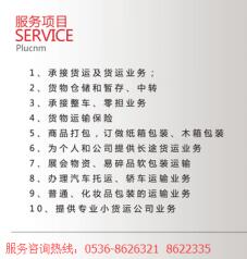 潍坊易安物流有限公司是经过工商审批、公路局批准的正规货物运输储运公司,自有车辆38部,合作大中型车辆300余部,在潍坊拥有多个分部,在全国设立30多个物流服务平台,为各企业事业单位承接各种大,中,小件货物的公路运输业务及货物的仓储,中转,配送,代收货款,整车零担,货运保险等服务项目,能满足不同客户的物流需求。 我们的服务宗旨是一流的服务+合理的收费=100%的满意。价格最低,上门取货,货物安全保障,解决您的一切后顾之忧。 本公司力争打造潍坊地区物流行业服务第一,货物安全第一,运输快速第一,规模第一的专业物流公司。以服务客户为己任,追求安全、高效、......